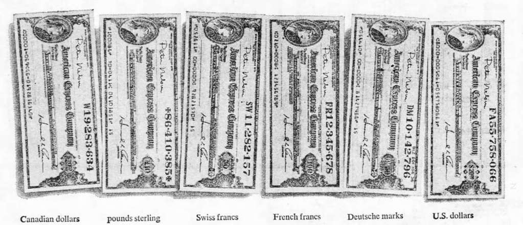 How did traveller’s cheques work? You handed over your cash and got the cheques in return, made out in your currency (or currencies) of choice. Note that the range of currencies could be limited: in the mid-1970s, American Express boasted it was the only cheque available in 6 major currencies.