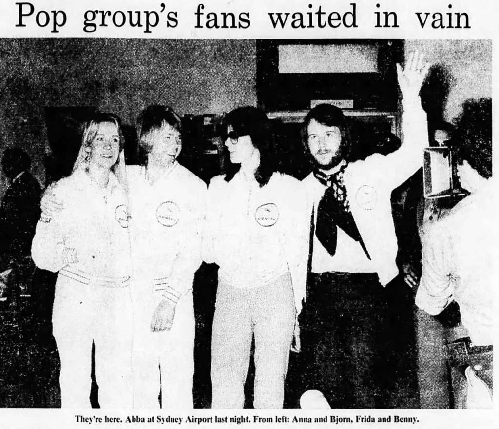 Here’s a contemporary newspaper picture of ABBA wearing the jackets from the Sydney Morning Herald on 28 February 1977, a day after they landed in Australia: